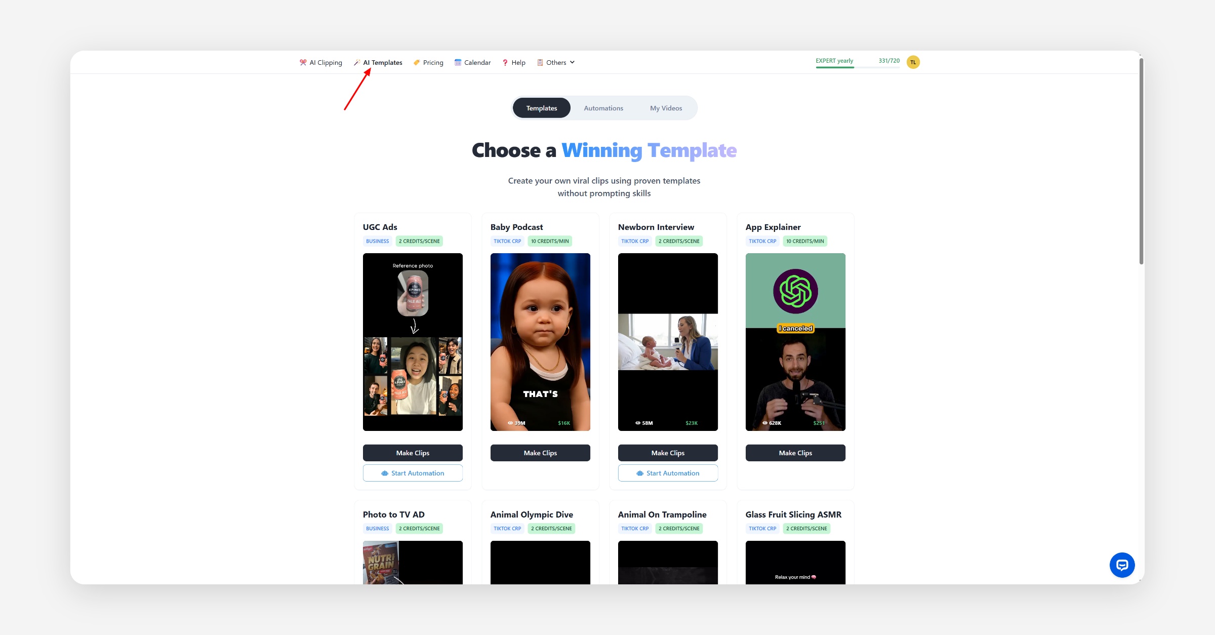 To use AI Templates, you’ll need a subscription with enough credits for the chosen template.