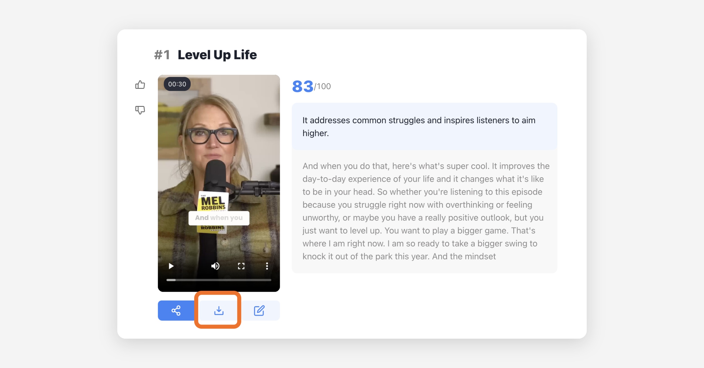 You can then download an MP4 file of the short-form clip