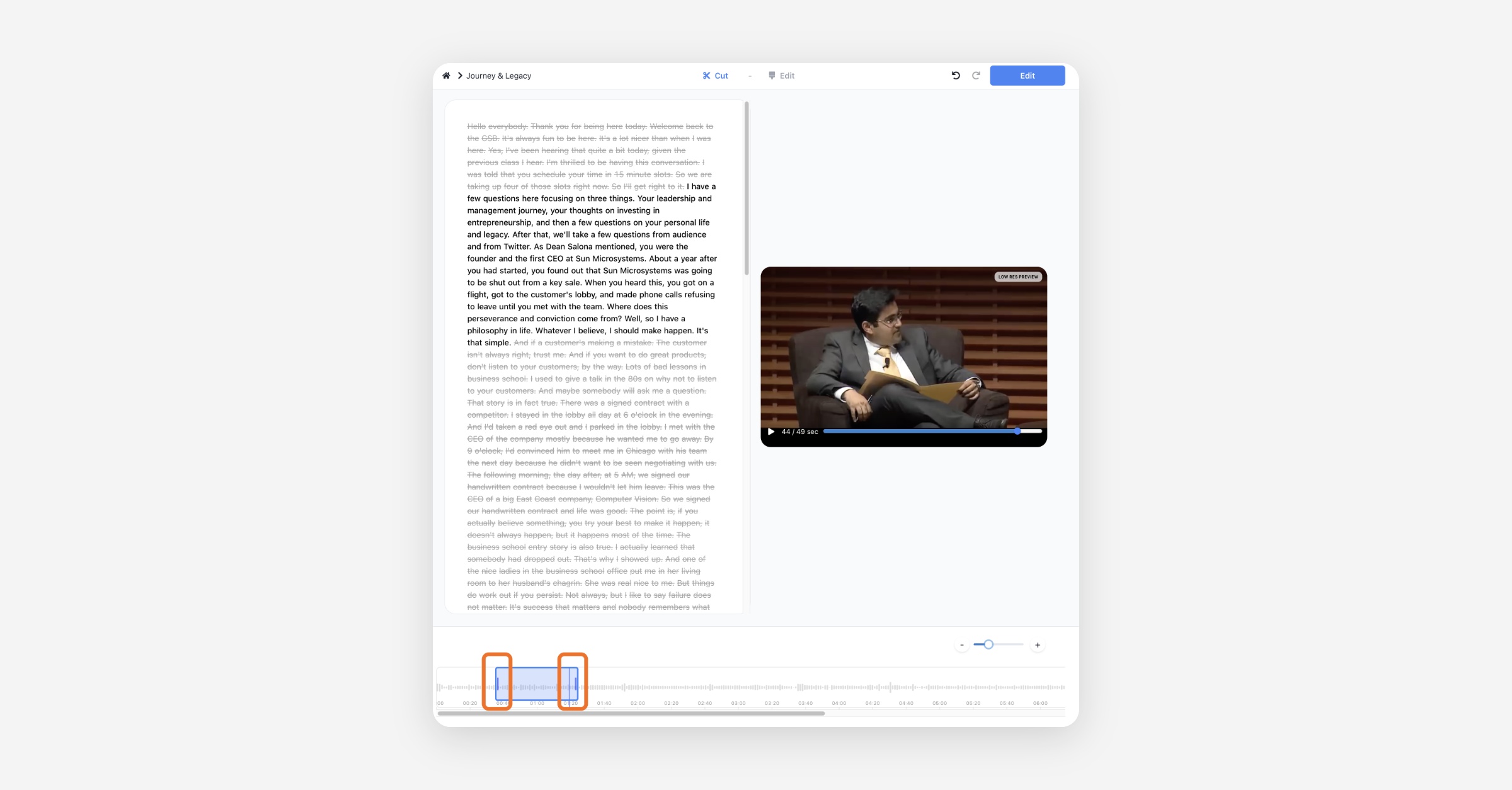 The editor is organized into two phases: Cut and Edit.